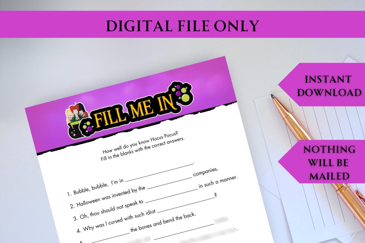 Hocus Pocus inspired digital download printable Fill Me In party game!