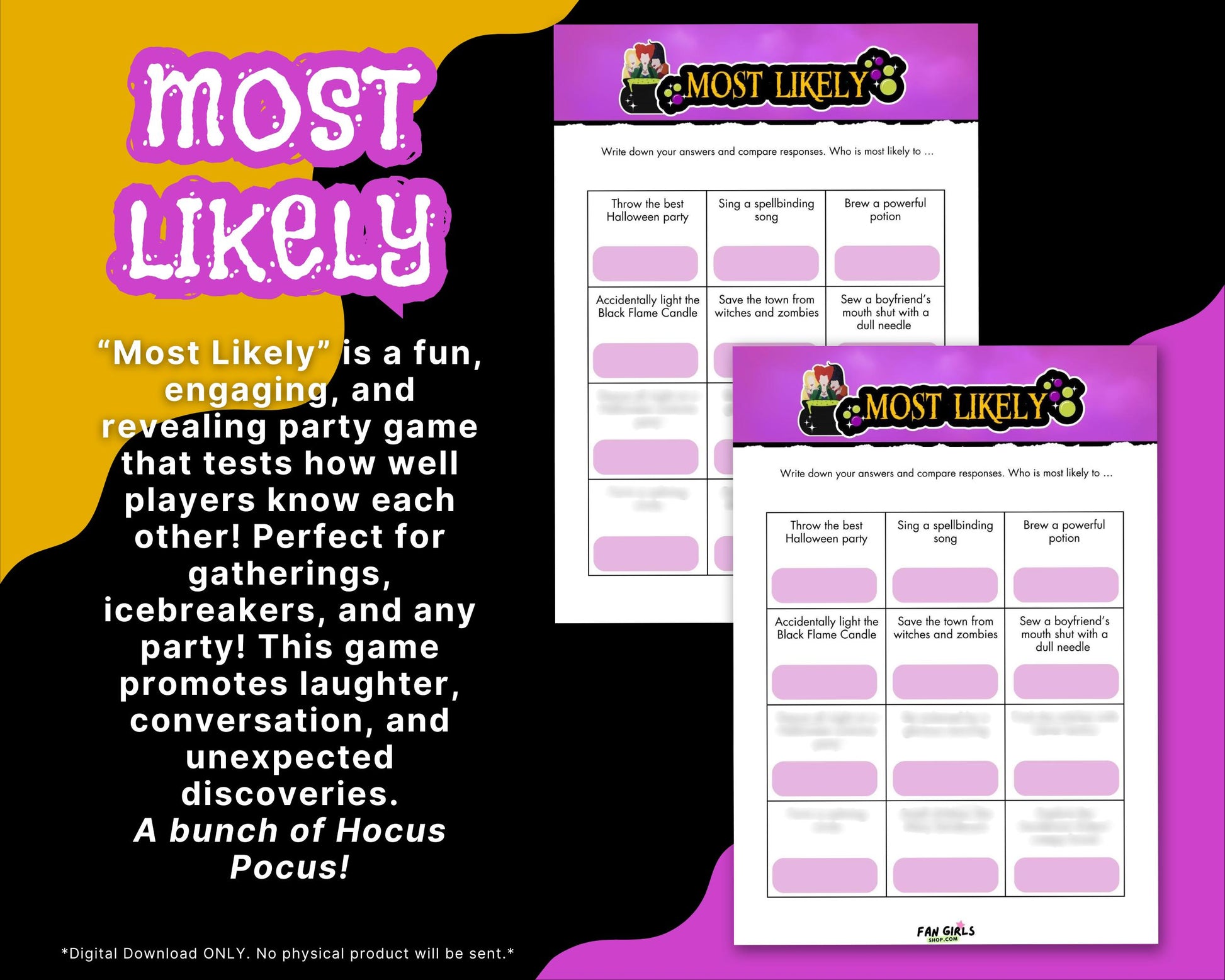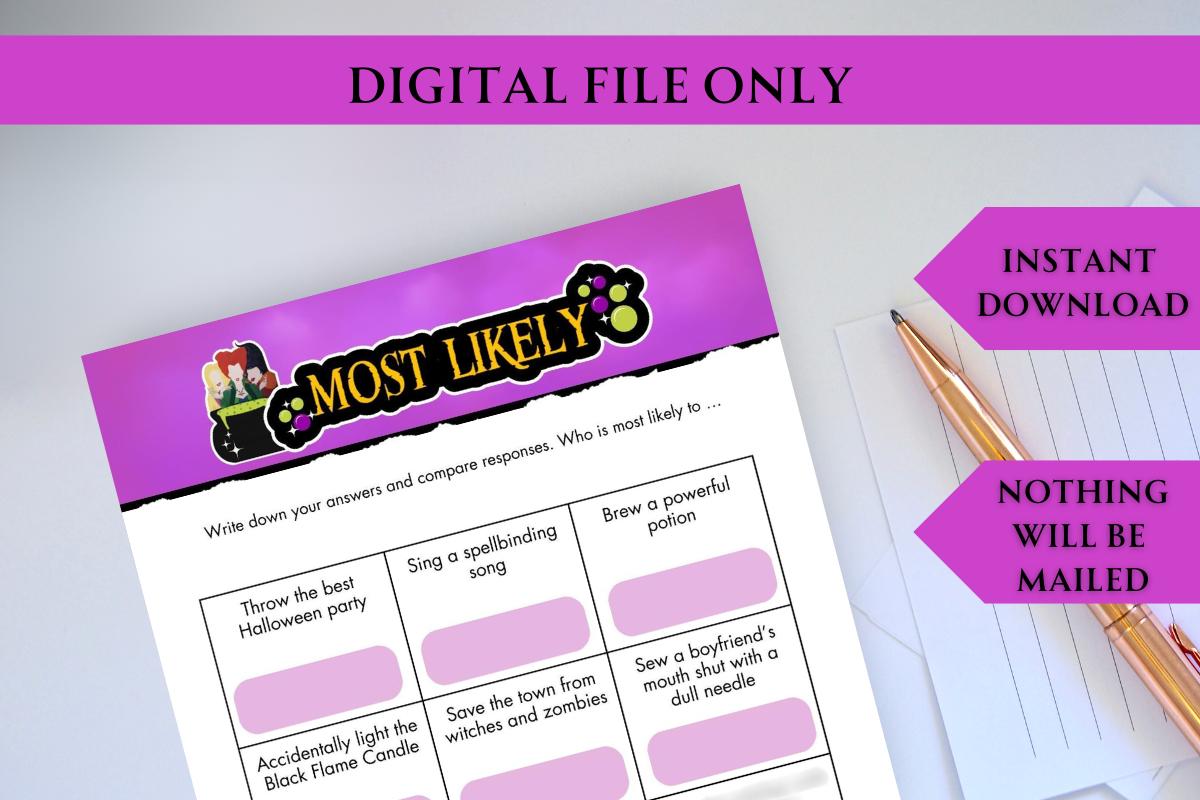 Hocus Pocus inspired digital download printable Most Likely party game!