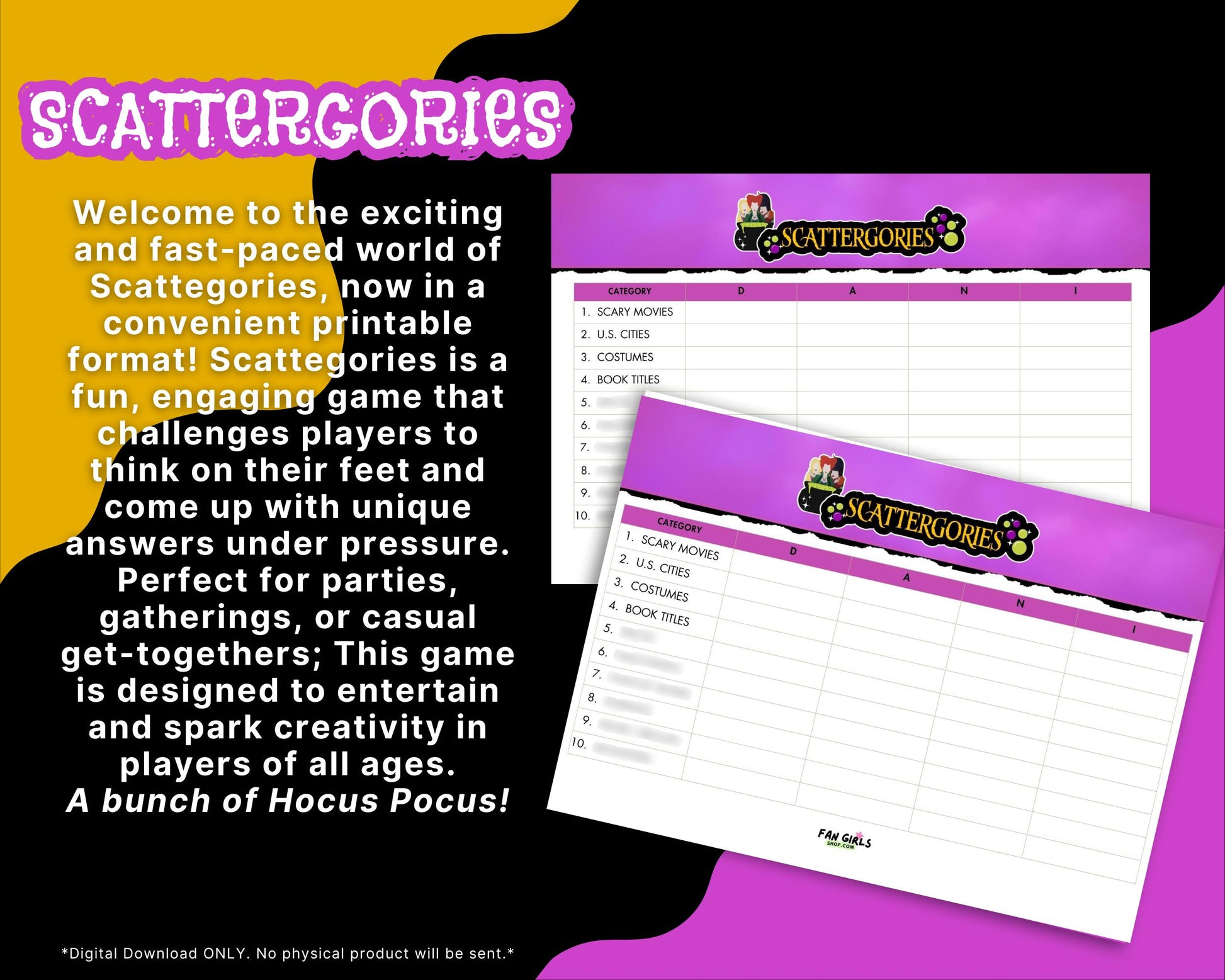 Hocus Pocus inspired digital download printable Scattergories party game!