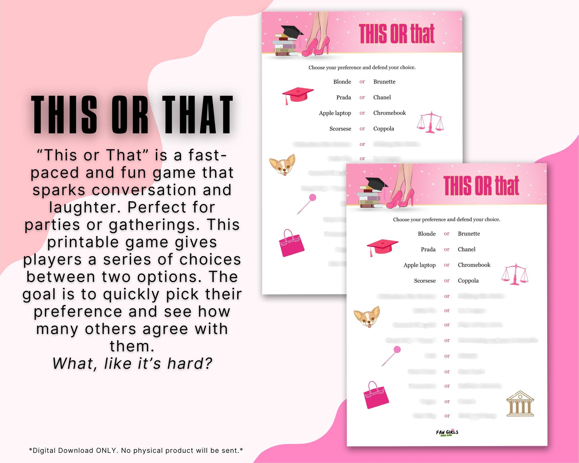 Legally Blonde inspired digital download printable This Or That party game!