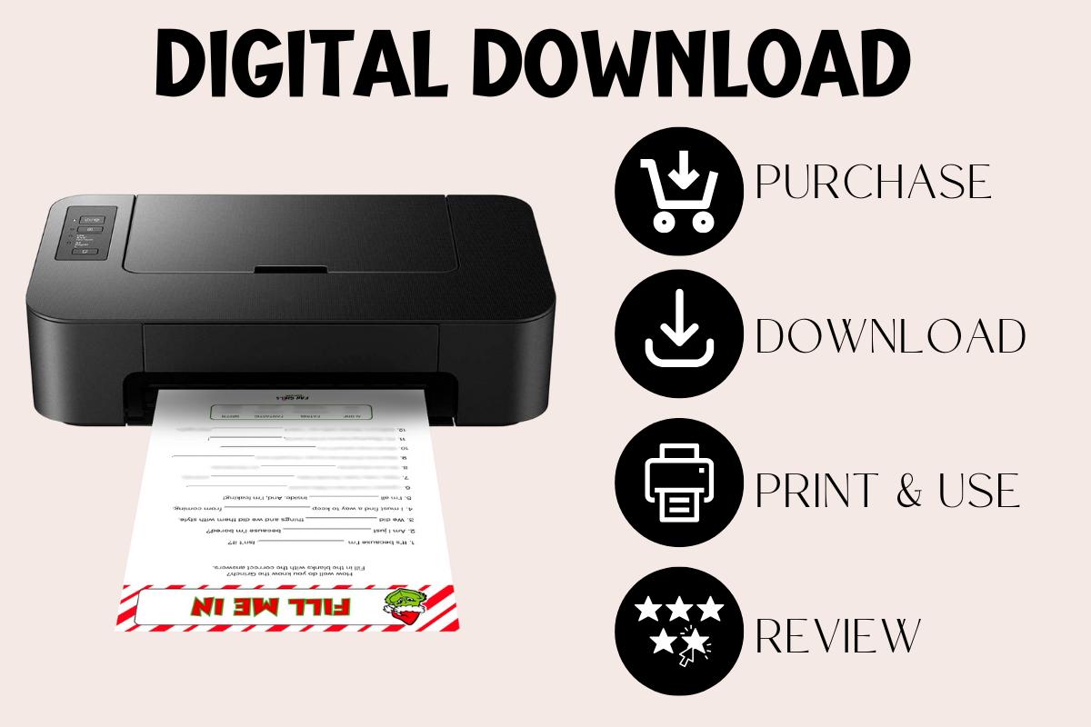 How the Grinch Stole Christmas inspired digital download printable Fill Me In party game!