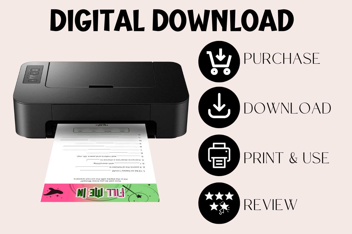 Wicked inspired digital download printable Fill Me In party game!