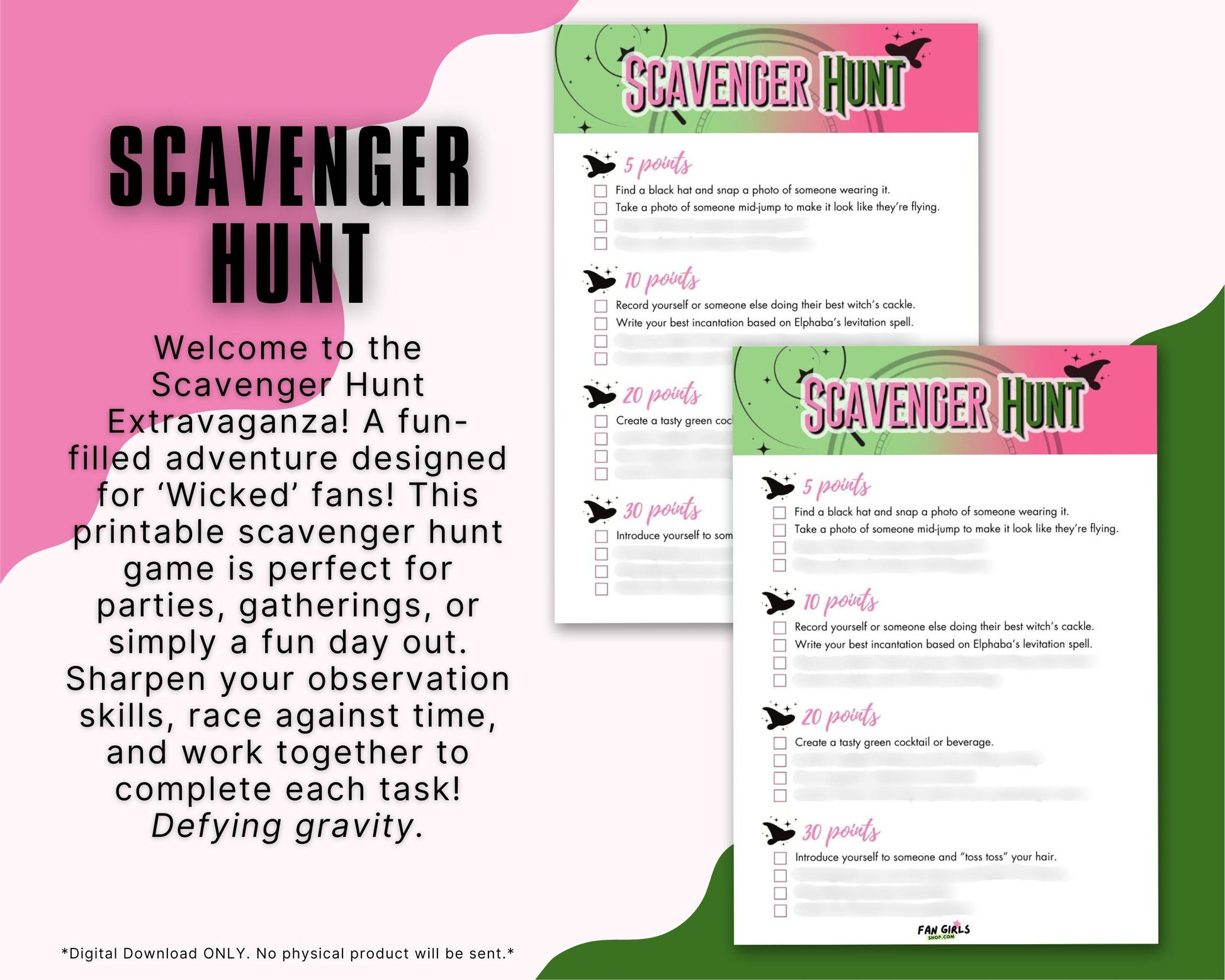 Wicked inspired digital download printable Scavenger Hunt party game!