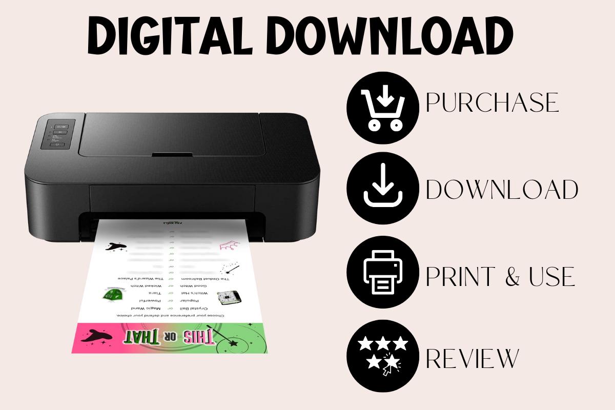 - Each page will be printed full 100% scale on standard 8.5x11 paper - 1 page includes 2 5x7 game cards (so less money or ink when printing out - yay!)