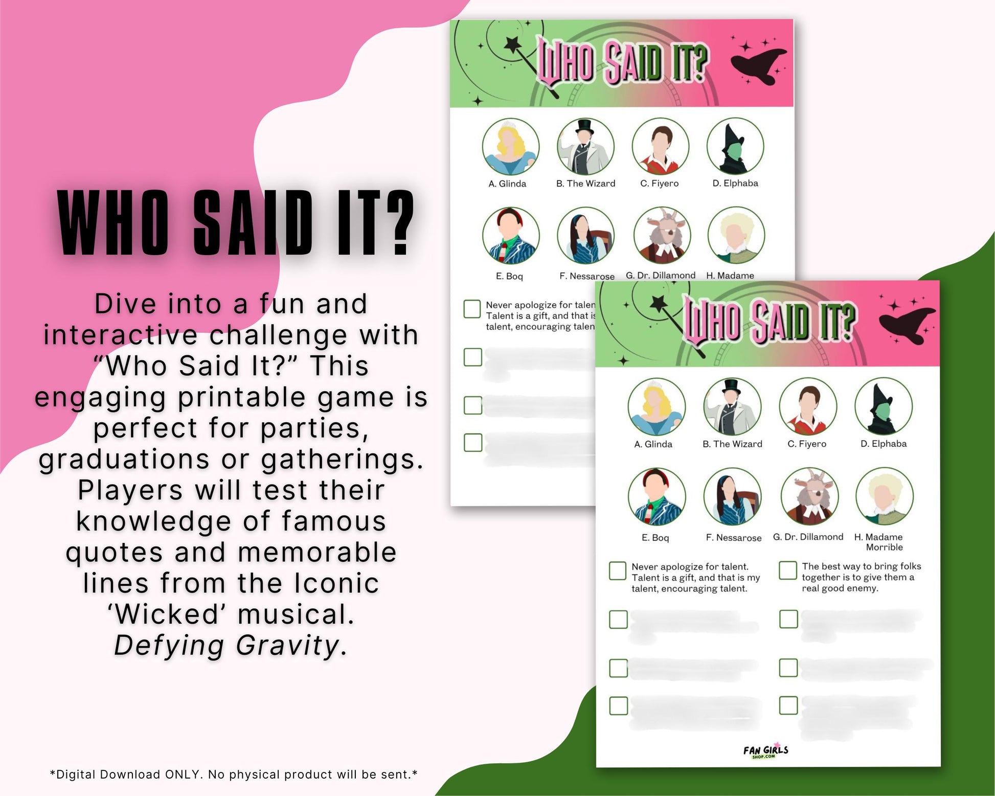 Guests can put their Wicked knowledge to the test, figuring out who said what iconic line from the movie.