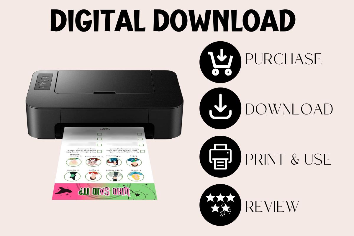 - Each page will be printed full 100% scale on standard 8.5x11 paper - 1 page includes 2 5x7 game cards (so less money or ink when printing out - yay!)